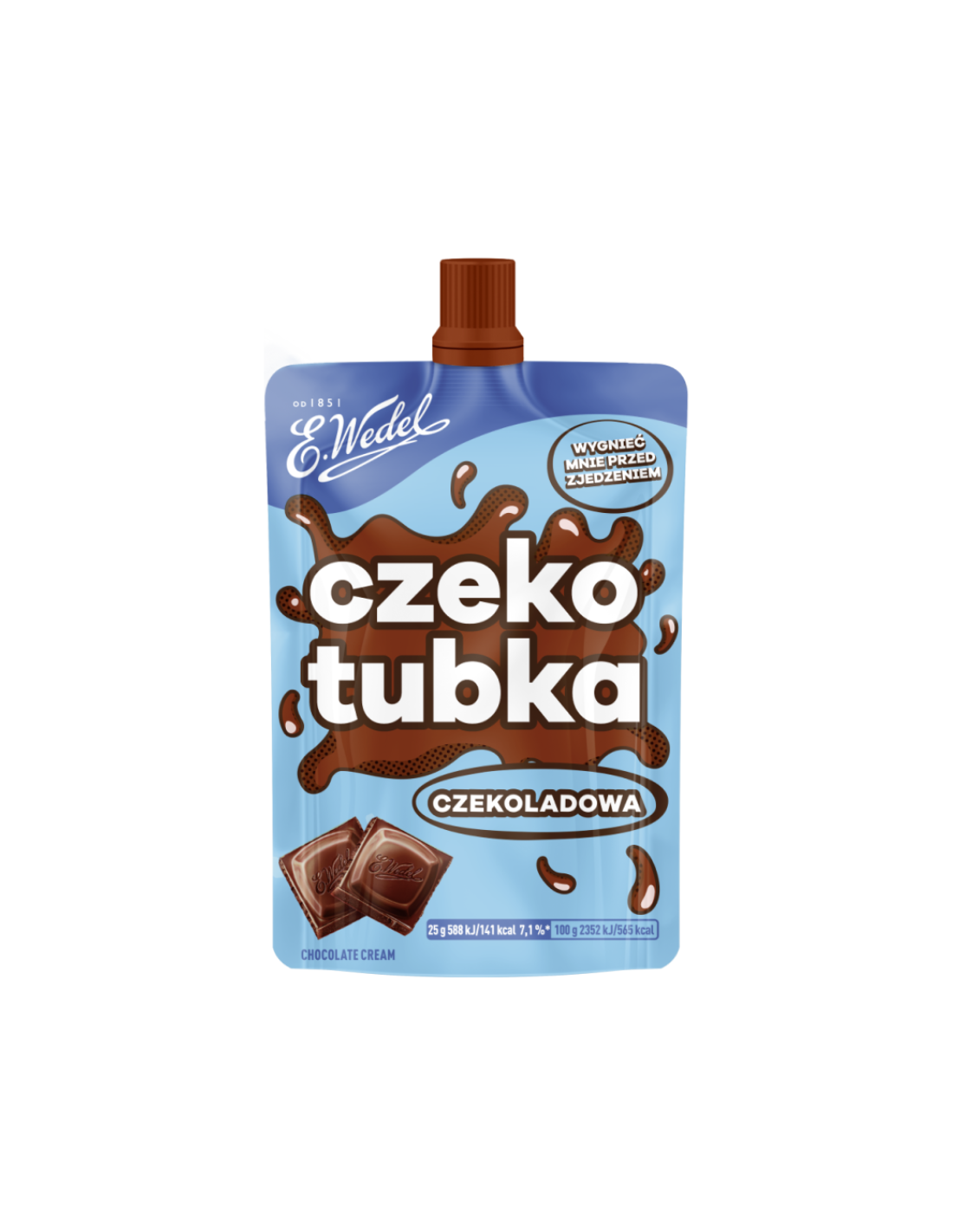 Sięgnij po coś wyjątkowego – CzekoTubka E.Wedel o smaku kakao i orzechów to kremowa pasta czekoladowa, która dostarcza nie tylko słodyczy, ale i wyjątkowego smaku prawdziwego Wedla. Idealna dla dzieci, młodzieży i dorosłych – do wyciskania prosto z tubki lub jako dodatek do naleśników, tostów i wypieków.
