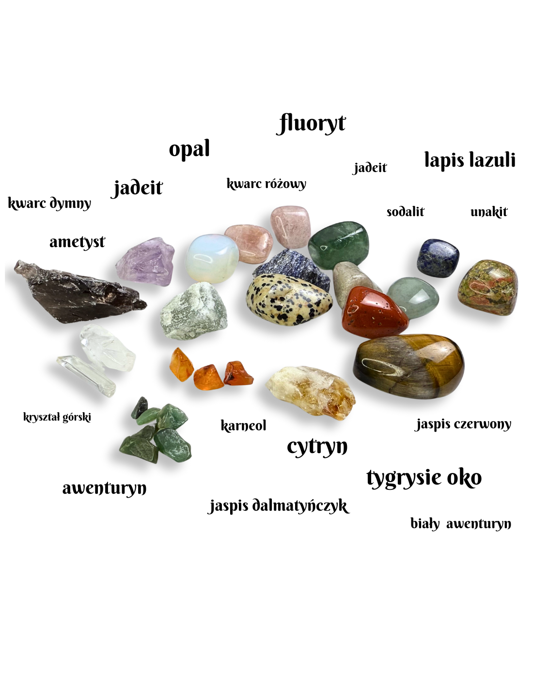 1. 18 kamieni naturalnych (każdy unikatowy):